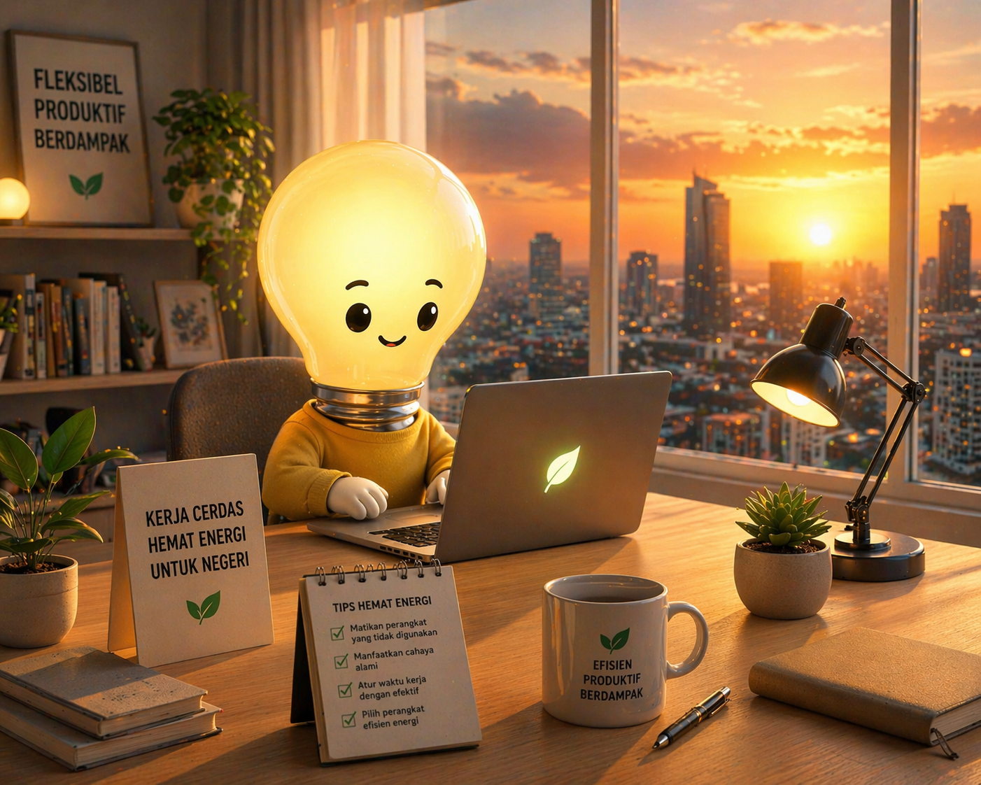 Dalam video yang dipublikasikan melalui Instagram @humasjateng, ditampilkan visual animasi yang menggambarkan pentingnya menjaga efisiensi energi dalam aktivitas kerja. Ilustrasi karakter lampu yang tetap menyala secara efisien menjadi simbol bahwa produktivitas dapat berjalan seiring dengan penghematan energi.